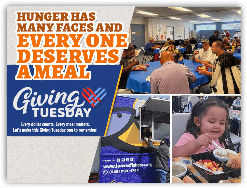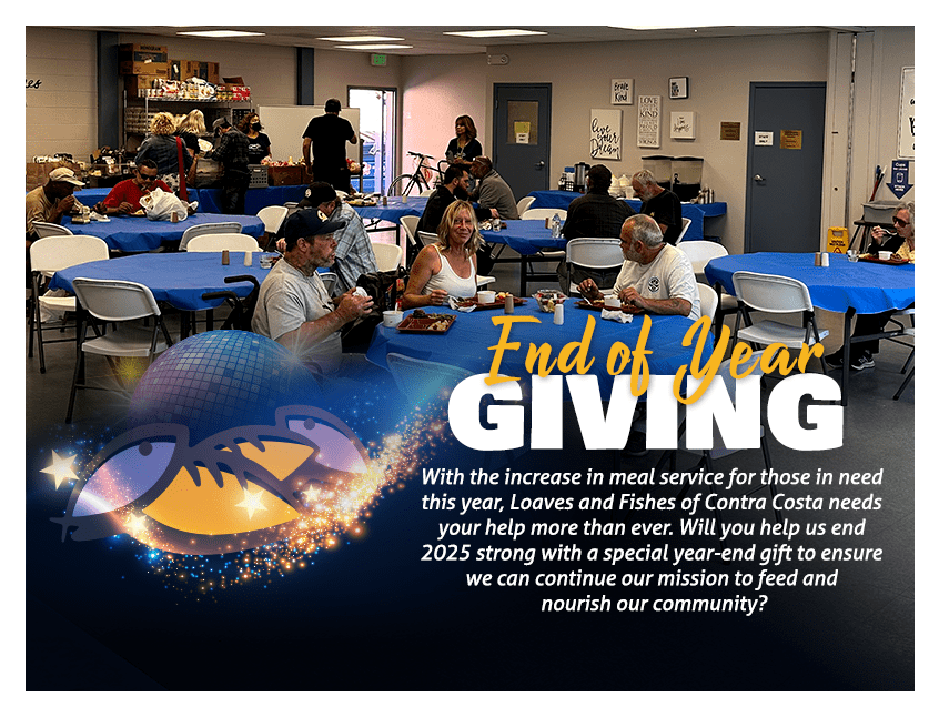 Loaves and Fishes of Contra Costa has served over 5 million meals to thousands of hungry county residents since 1983, and our hearty team of volunteers continue to help serve the healthy and delicious meals our chefs prepare and distribute our food pantry groceries to anyone in need.